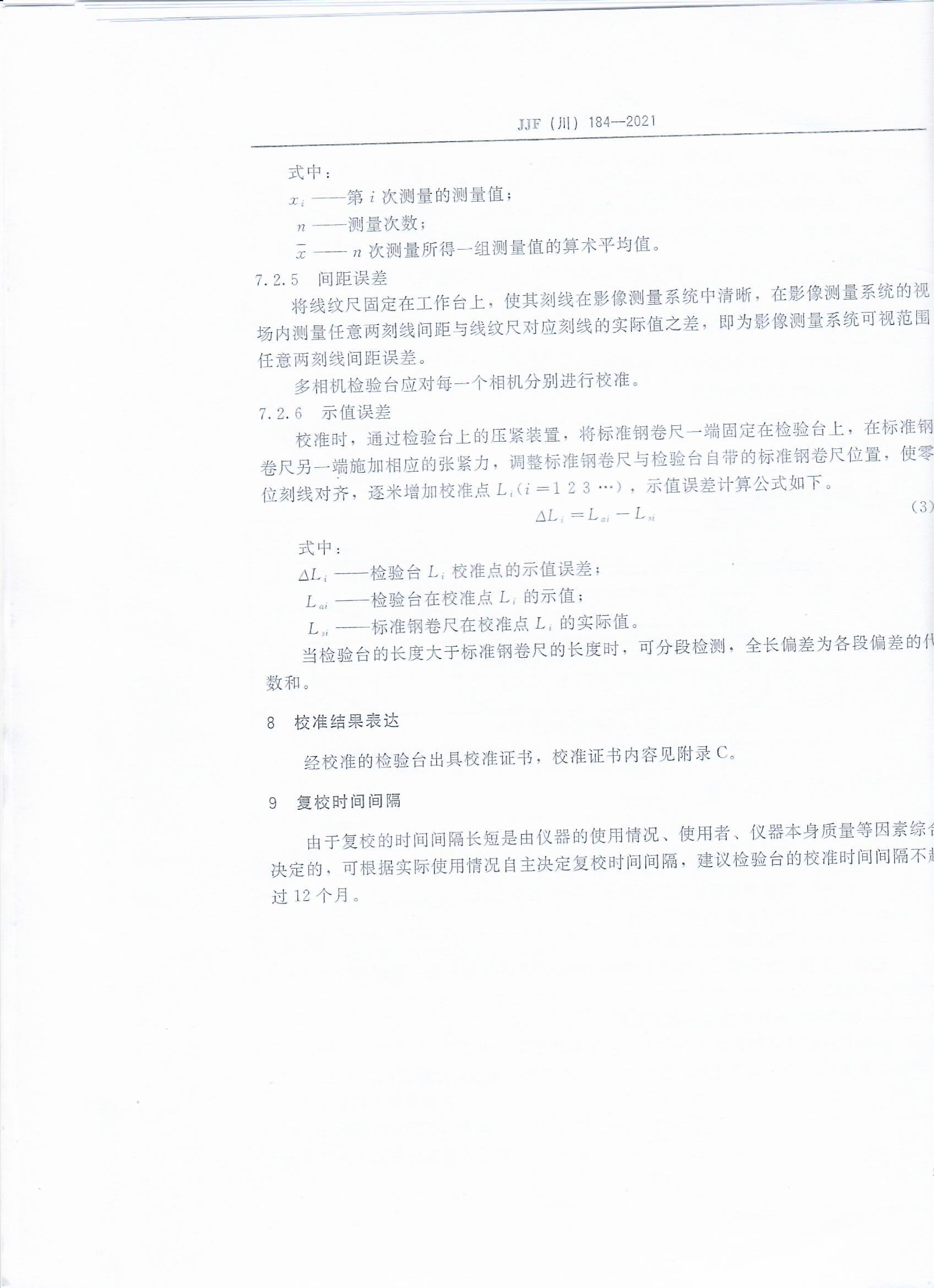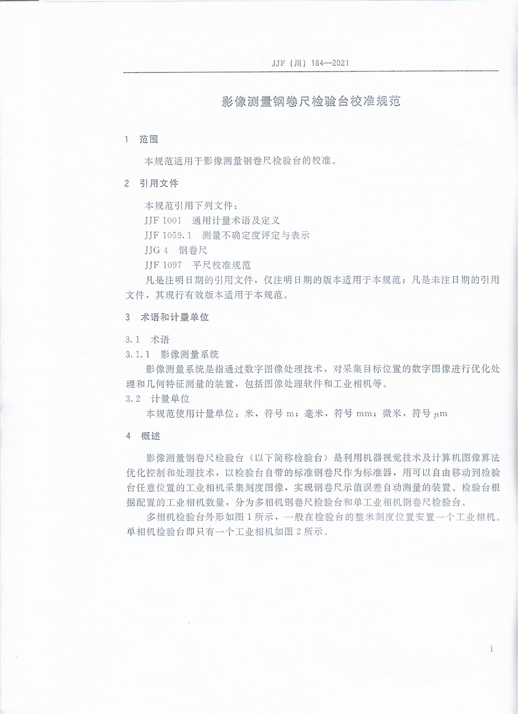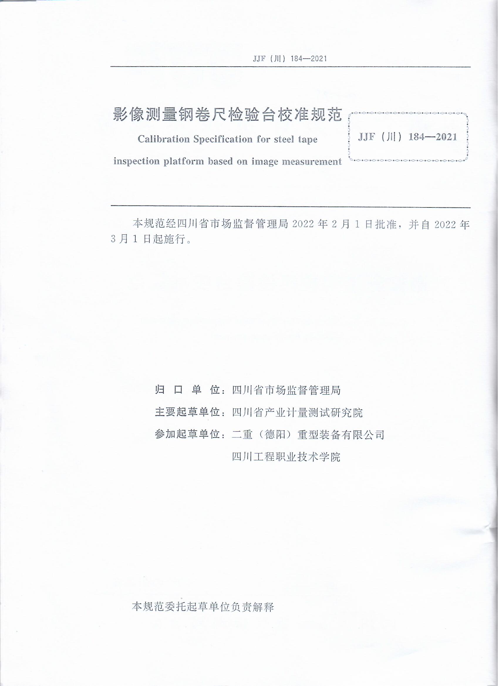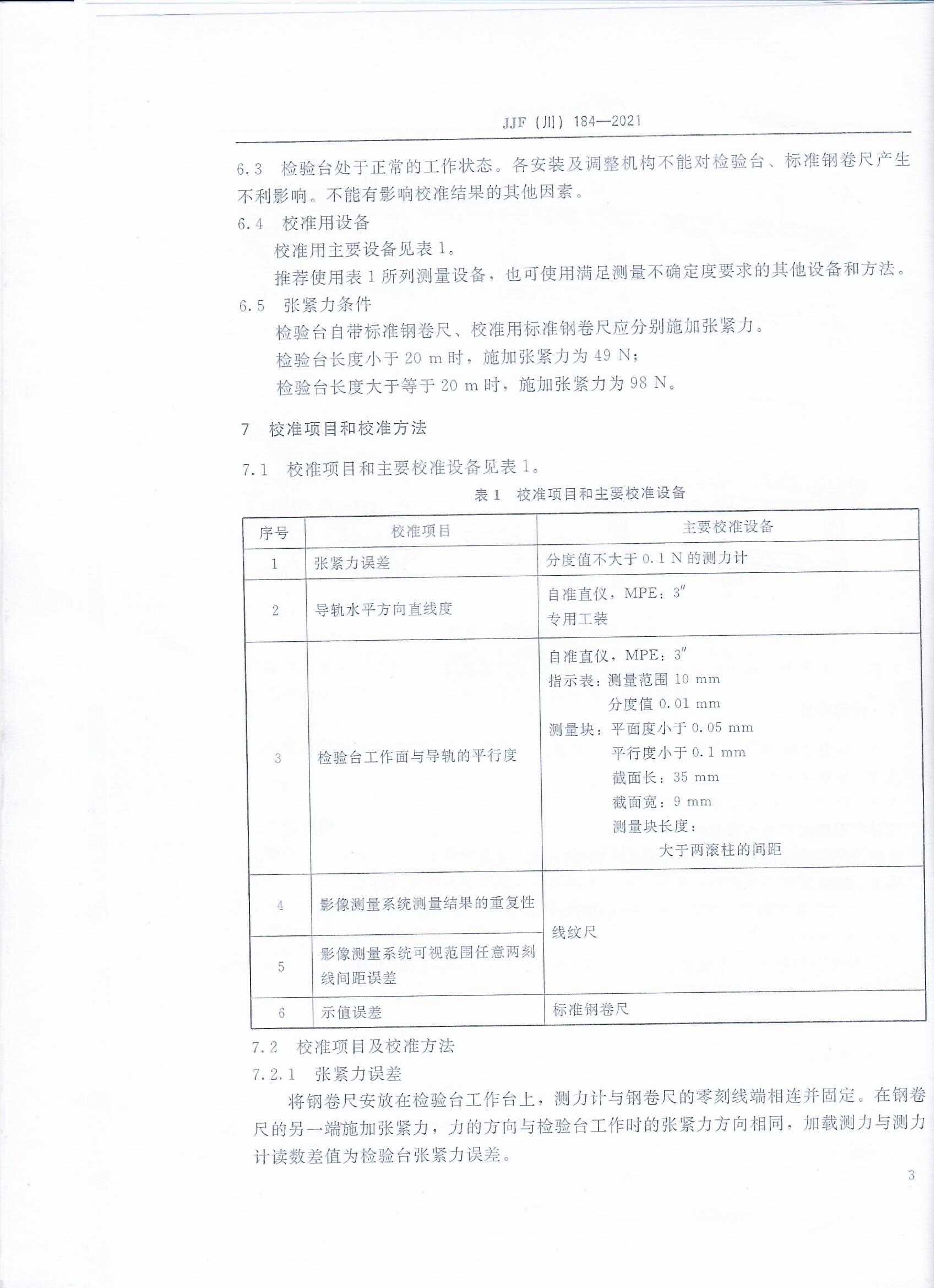 JJF(川)184-2021影象丈量钢卷尺查验台校准规范(