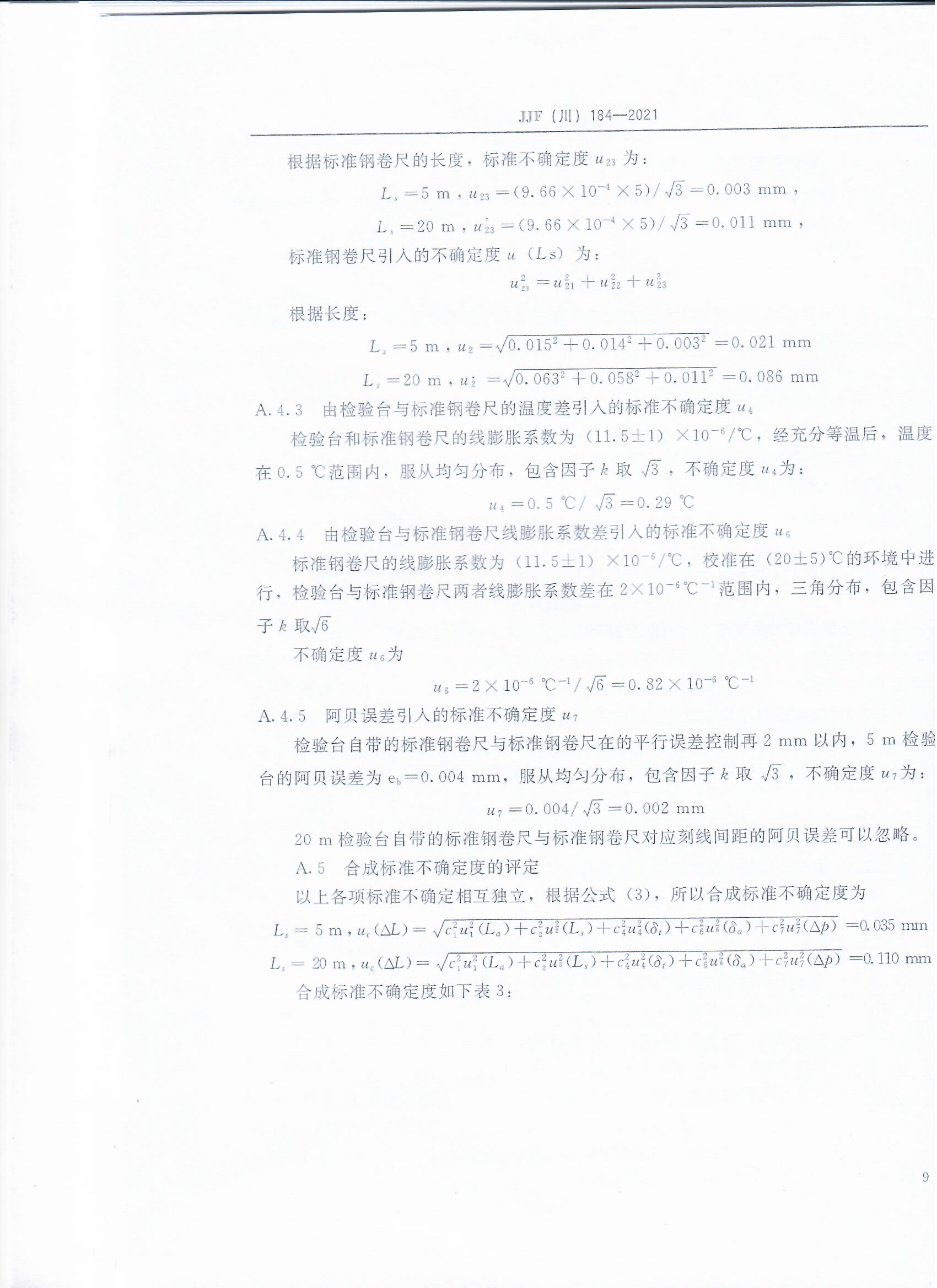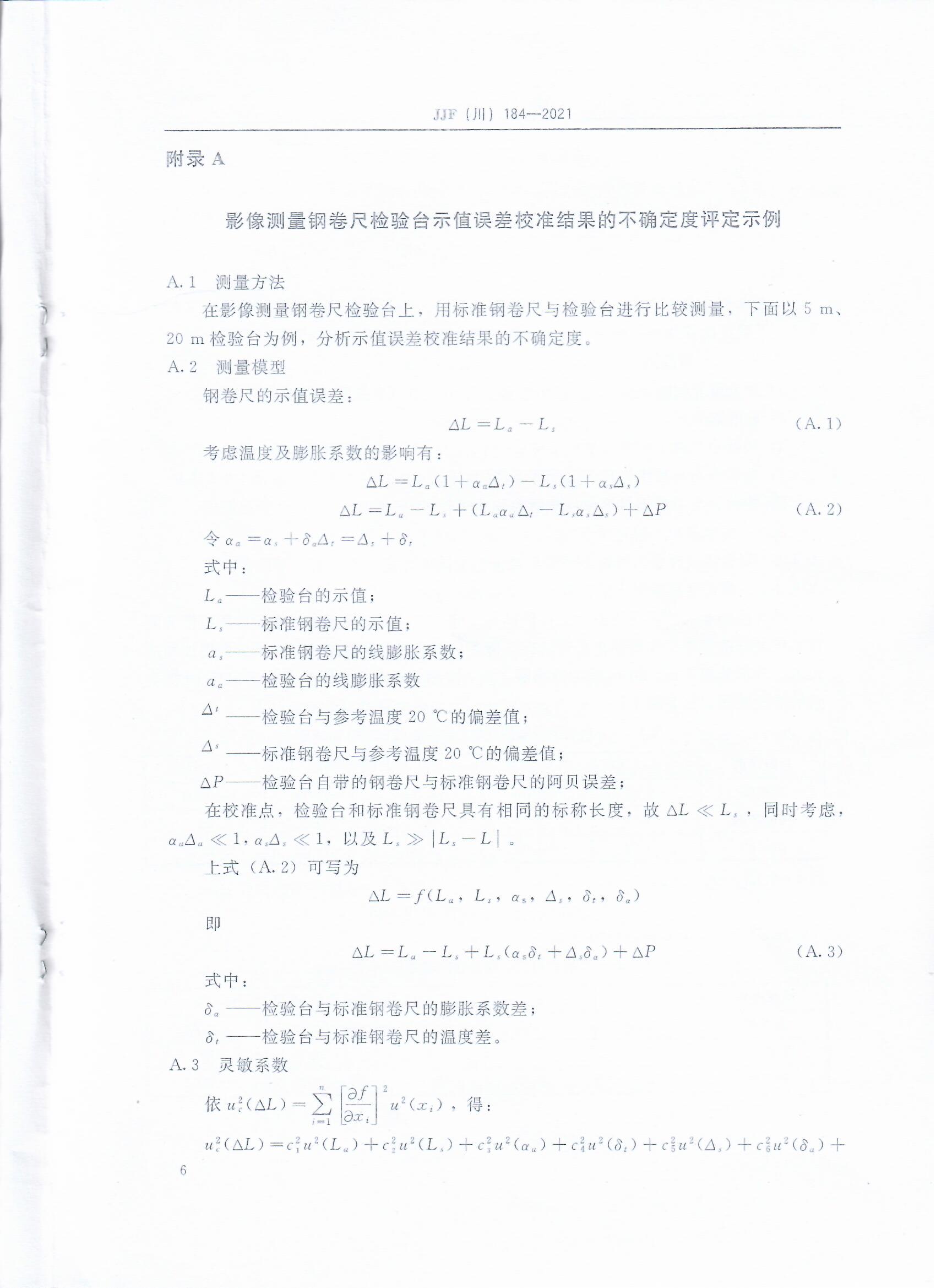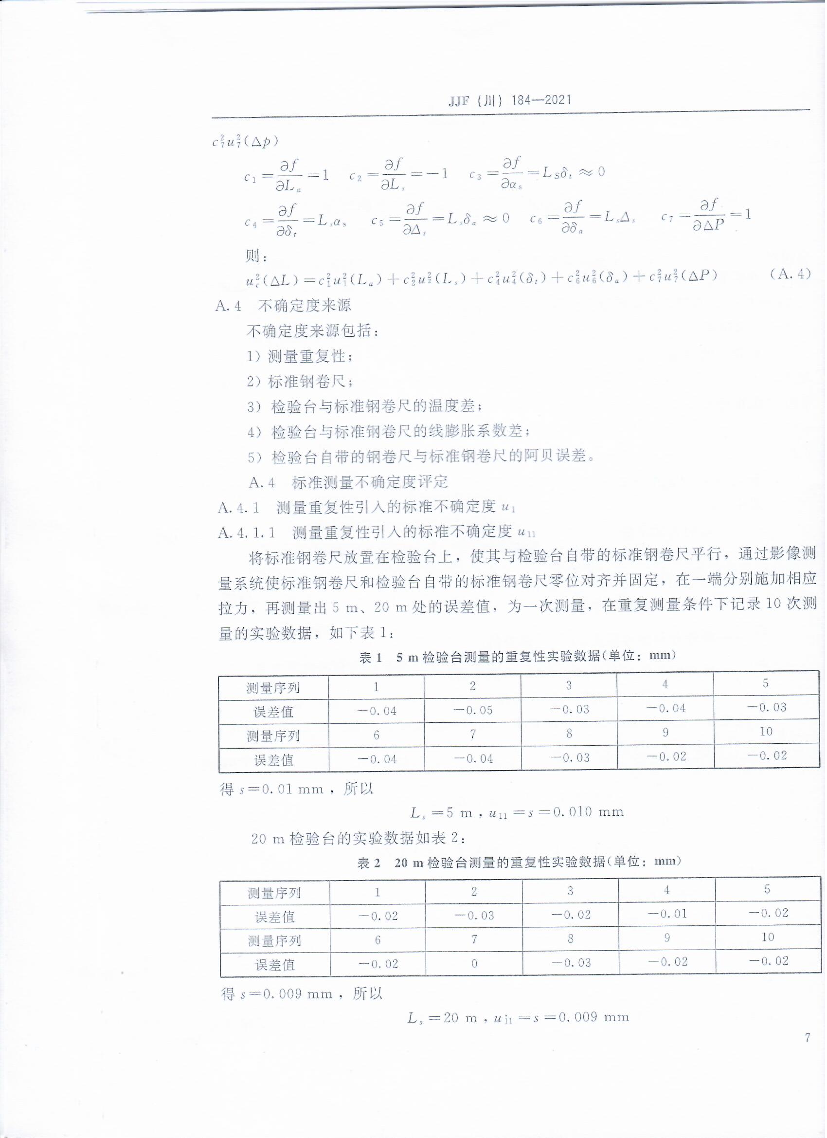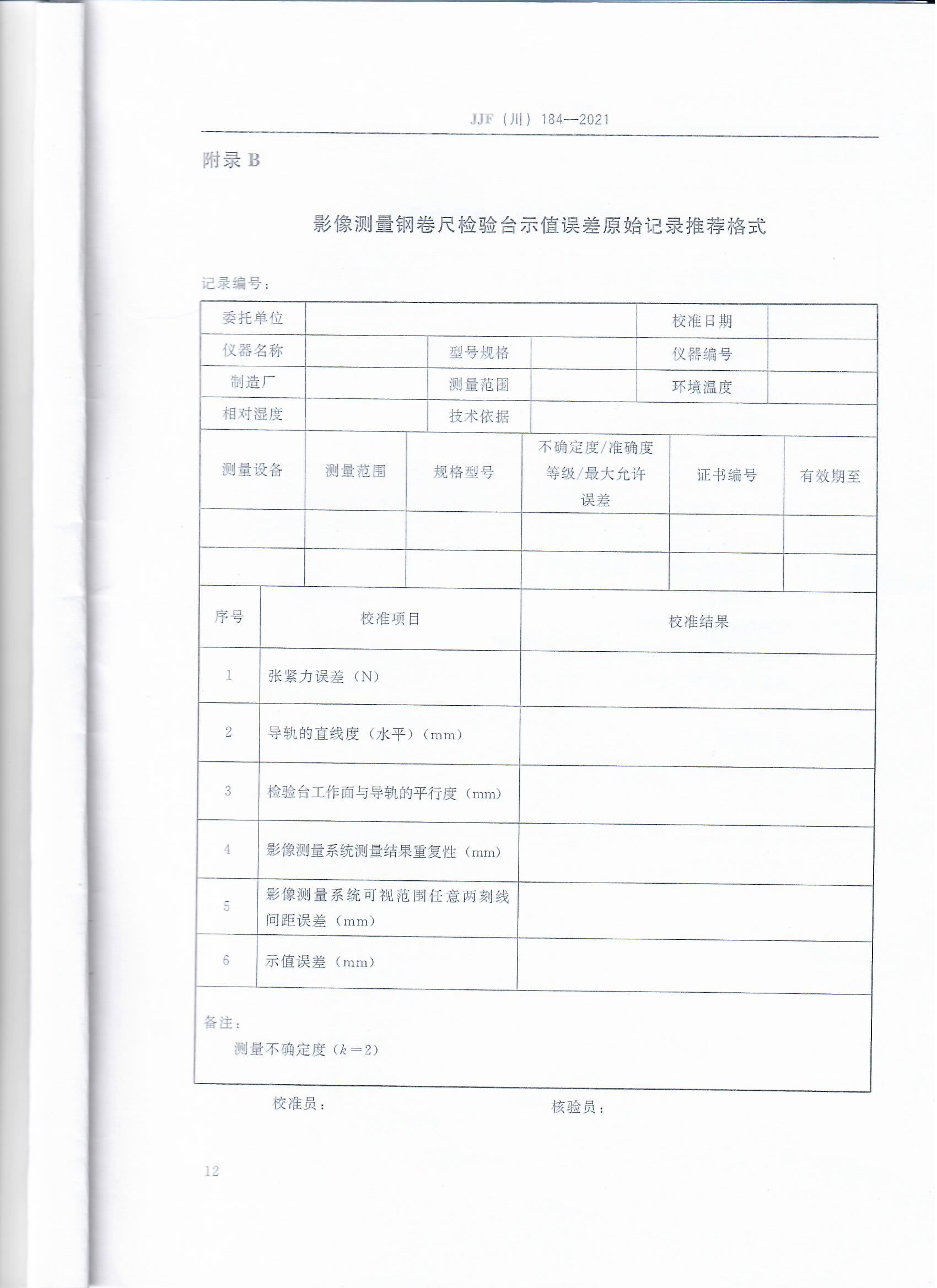 JJF(川)184-2021影象丈量钢卷尺查验台校准规范(
