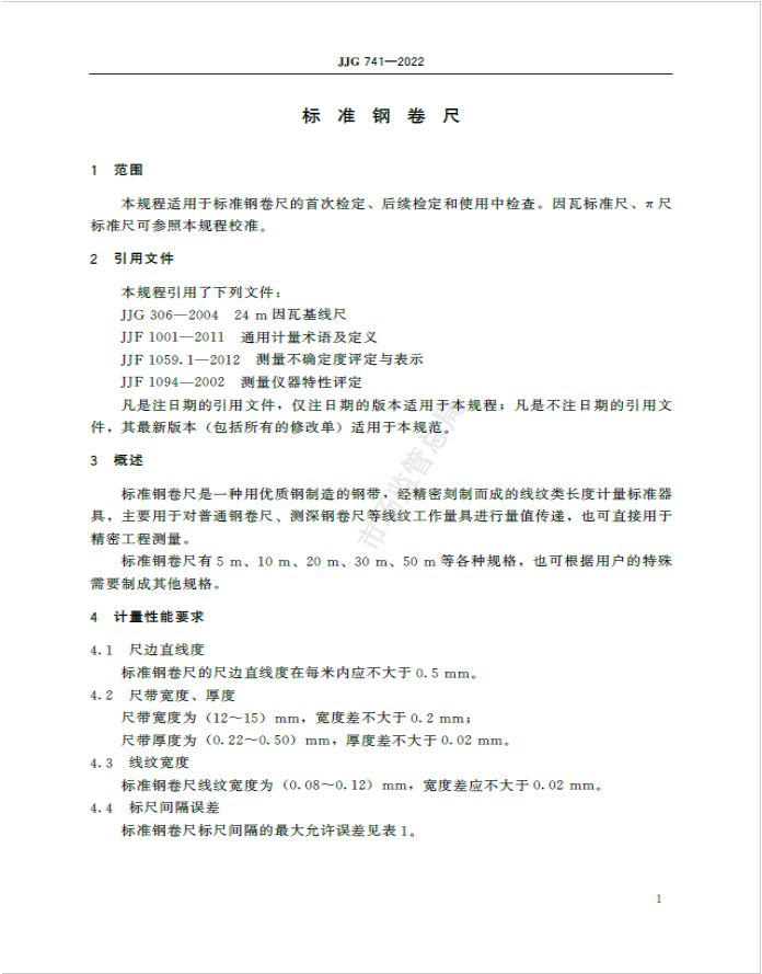 JJG 741-2022《标准钢卷尺检定例程》